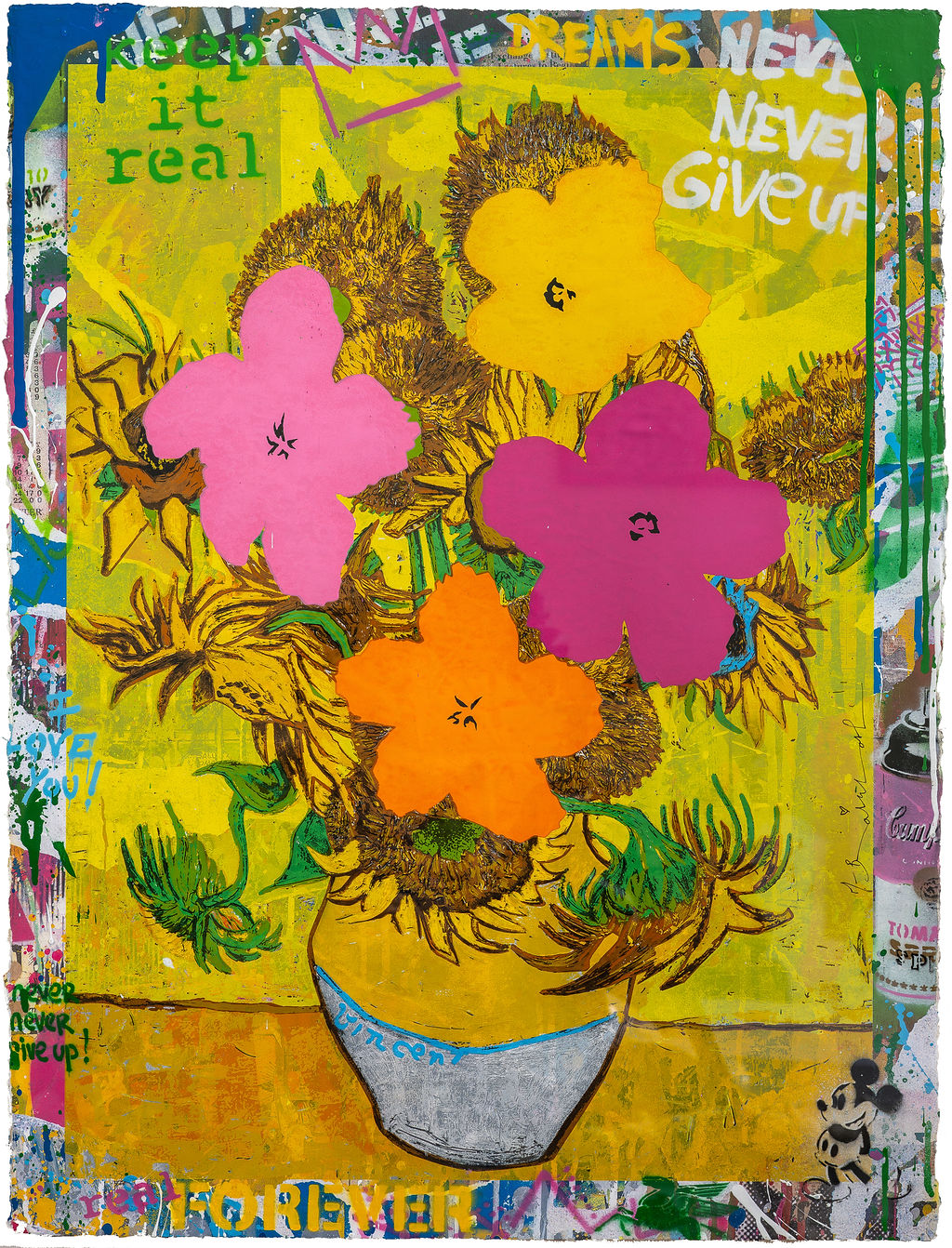 From the very moment he emerged, Mr Brainwash rocked the art world with his innovative and fearless style. He uses elements from pop art’s past and the raw components of his street art beginnings to create larger-than-life exhibitions and collaborations. Mr. Brainwash’s imaginative construction of gallery exhibitions and art shows throughout the world has continued to attract the attention of critics and celebrities alike.