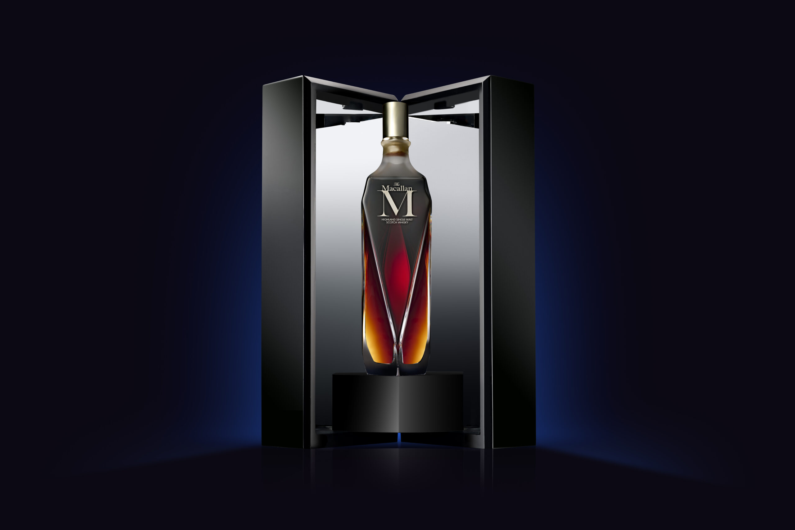 This limited edition Macallan M Decanter is the final release in the prestigious 1824 series and is understood to contain Macallan single malt whisky dating as far back as the 1940’s. Bottled in 2013 at 44.7% ABV, this is the inaugural release from the 1824 ‘M’ decanter series, that scored a big 91 points on WhiskyFun and churned out just 1750 bottles. The gorgeous crystal decanter is designed by Fabien Baron a well known French Director and Art Director and created by Lalique. It is believed to be one of the more difficult decanters to produce as it requires a 15 stage finishing process.