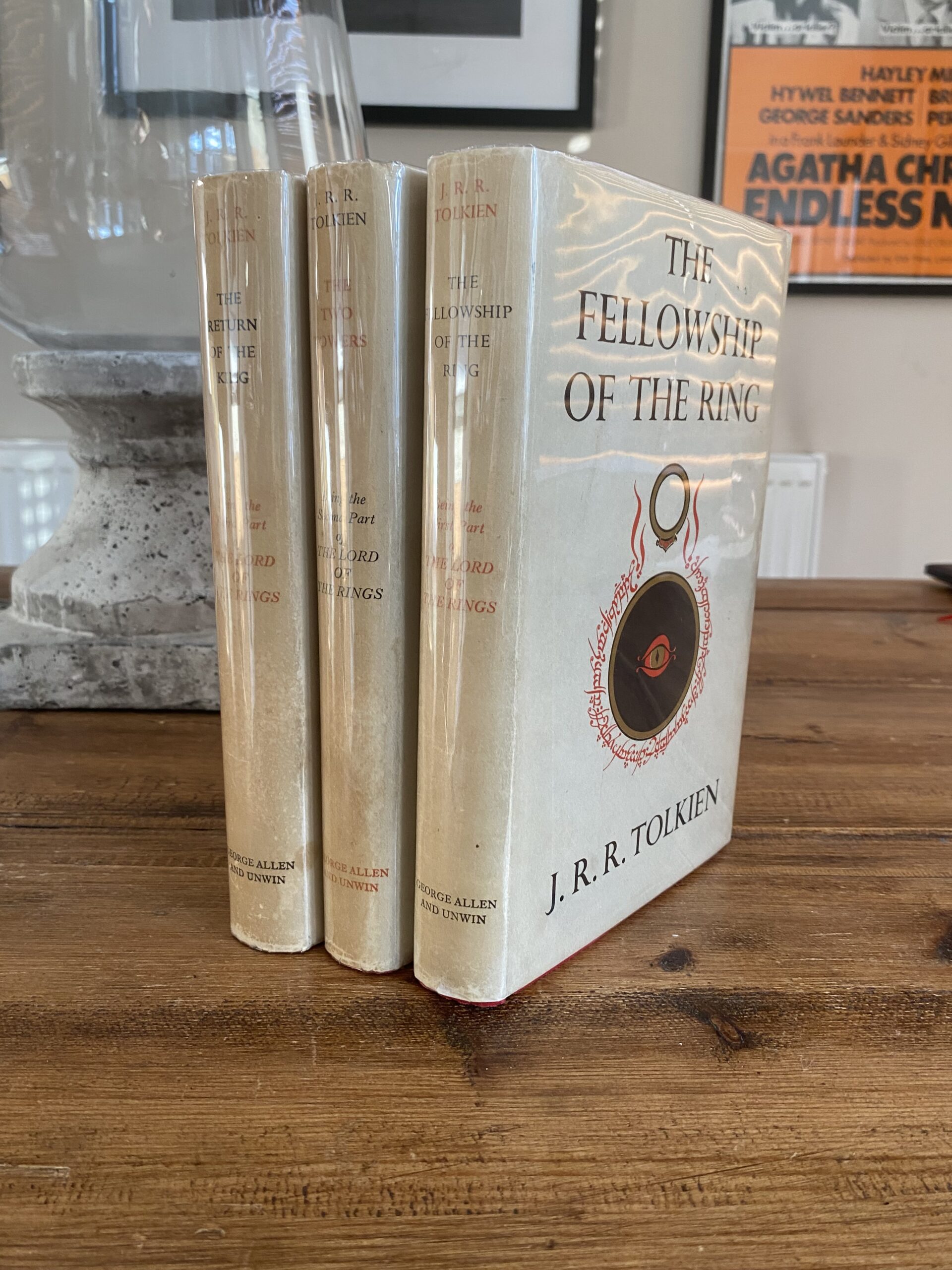 With first edition sets of The Lord of the Rings, most examples have been cobbled together over the past seventy years, long after publication, with collectors swapping in and out different books, usually as they look to build up the best condition possible for their set. There are pretty much no sets that can be said to have been together since day one. With LOTR, as they were published one after the other over a 15-month period, and in different numbers, there were no more than 3,000 sets in first impression available by the end and we can expect 70 years later many have been lost to the sands of time, so the number now will be significantly lower. Collectible copies, as seen here, are seriously rare. Copies that are collectible that can be said with near certainly to have been together since day one are as rare as the one ring!
